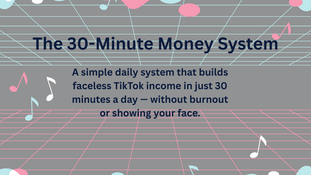 The 30-Minute Money System shows you how to build calm, faceless TikTok income using a short daily routine that’s easy to keep — even with a job, family, or low energy.